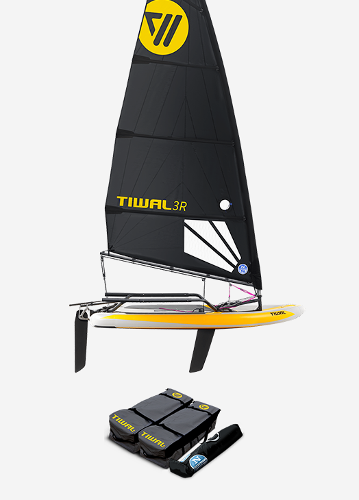 PVC inflatable hull - drop stitching - 2 airtight compartments, Aluminum frame, assembled with push pins and clevis pins, C90 carbon mast – 5 sections, C90 Boom – 2 sections, 7.2 m2 (77 sq. ft.) Xi® and monofilm Sail – North Sails, Rudder and daggerboard – Composite, Rudder head – Die Cast, Stick & extension – Aluminum and foam, Mainsheet swivel jammer-Harken , Blocks set – Harken and Ronstan, Fittings – Clamcleat, Toe strap rope – High-density foam, Rigging – Dyneema and polyester, Rechargeable low-pressure electric pump 12/110V, High-pressure manual pump – 2200cc, Stowage bagsRef TWL3R72
